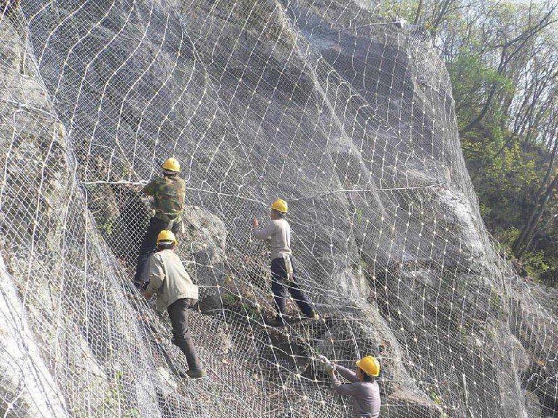 主動(dòng)防護(hù)網(wǎng)是目前最有效的邊坡防護(hù)產(chǎn)品,主動(dòng)防護(hù)網(wǎng)是將小片鋼絲繩網(wǎng)縫合在一起形成一張大網(wǎng),將整個(gè)山體罩住,防止落石滾落。即使非常陡峭的邊坡也同樣可以采用主動(dòng)防護(hù)網(wǎng)的方式進(jìn)行防護(hù),陡峭的山坡落石一旦風(fēng)化,就極有可能發(fā)生塌方、滾落,傷及到路邊的行人與車輛。采用主動(dòng)防護(hù)網(wǎng)進(jìn)行防護(hù),巖石風(fēng)化、滾落也只能在主動(dòng)防護(hù)網(wǎng)的控制范圍內(nèi)運(yùn)動(dòng)。