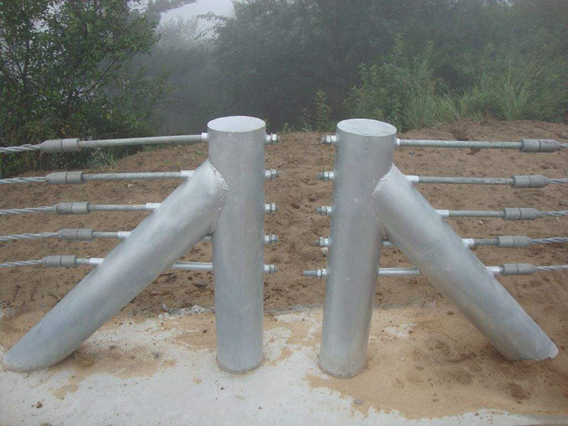 纜索護欄的組成部分:纜索護欄立柱、纜索、纜索護欄中間立柱、托架等。纜索護欄中立立柱主要起到支撐纜索的作用。真正吃力的在纜索護欄兩端立柱,需要將纜索撐緊,這樣才能保證纜索護欄的有效防護。